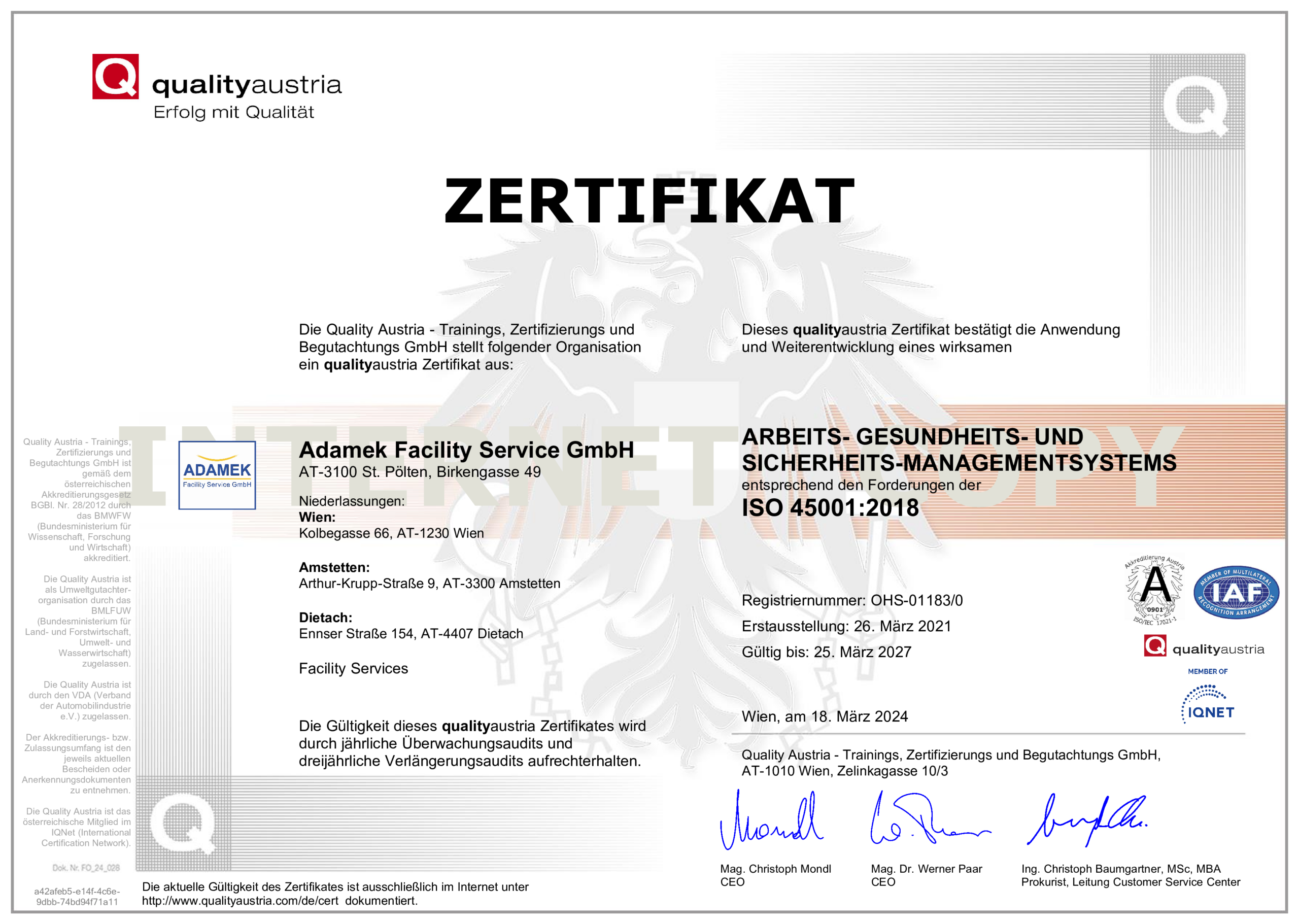 ISO 45001:2024 (Arbeits- und Gesundheitsschutzmanagementsystem) sowie