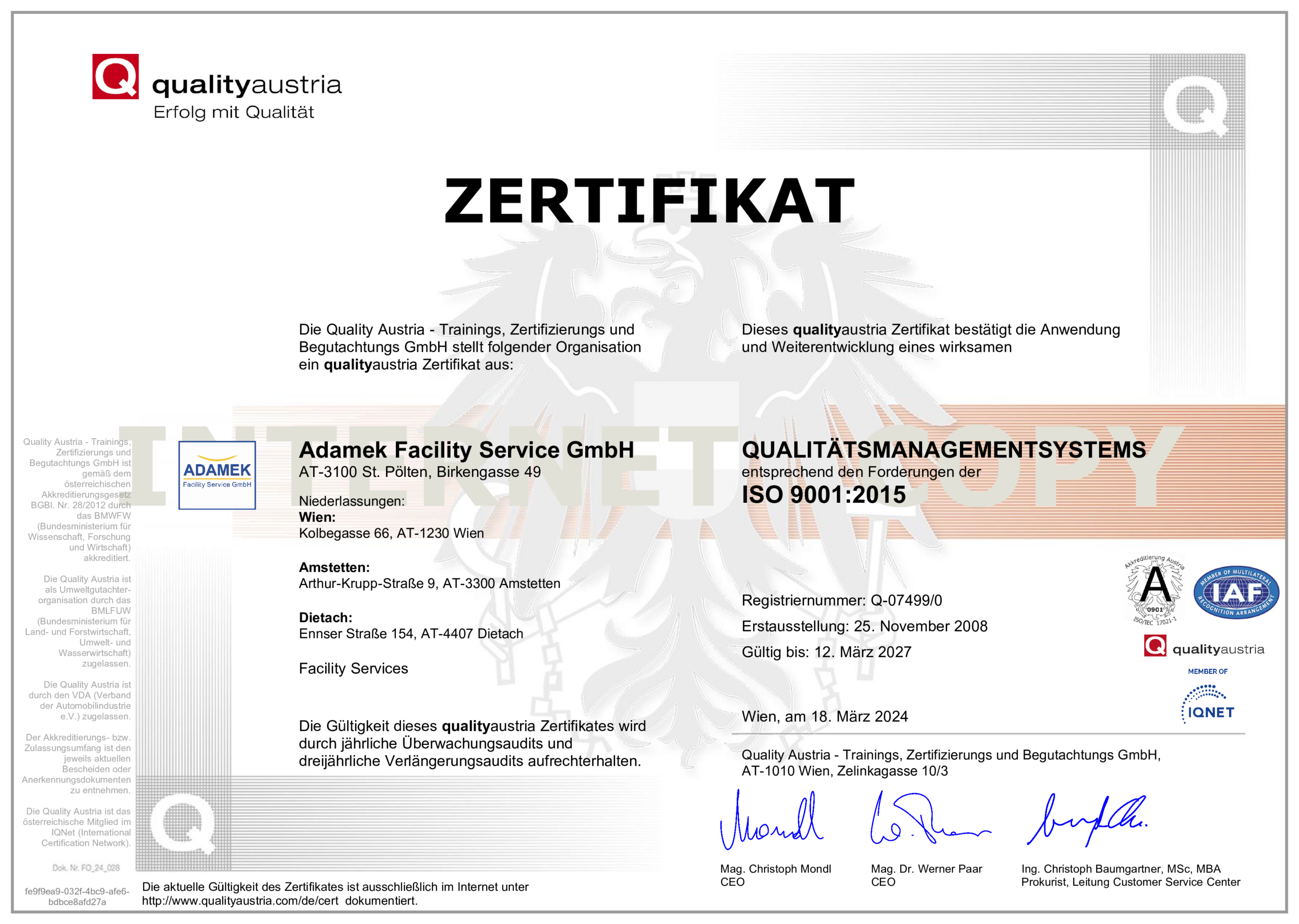 ISO 9001:2024 (Qualitätsmanagementsystem),